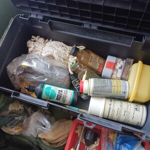 Reinigungsgerät für .30 06, .22 Hornet, 16/70, 12/70 (Reinigungsstöcke Holz und Kunststoffummantelt zerlegbar und in einem Stück) Reinigungsketten .30 und .22, Dochte und Filze für die obengenannten Kaliber. Laufreiniger, Waffenöl und noch jede Menge Kleinteile. VHB von 0 bis 20 € für alles.