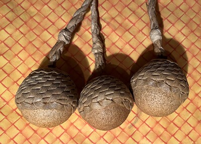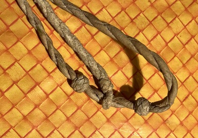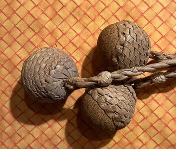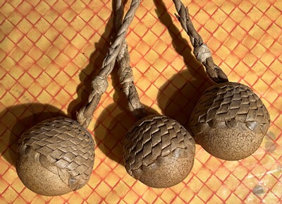 Sehr seltene Original argentinische BOLA, handgeflochten Leder 3 Seile, 3 Steine TOP Zustand!