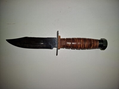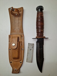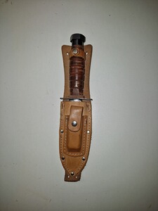 Bei der Lederscheide sind die oberen Nieten heraus. Mir Tackernadeln wieder "repariert"