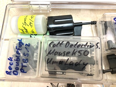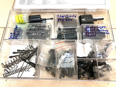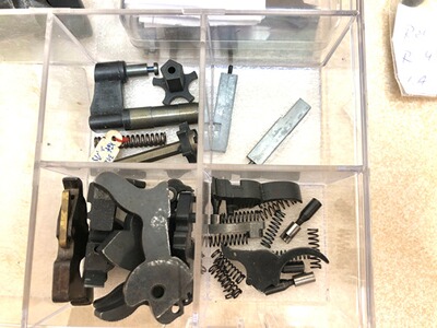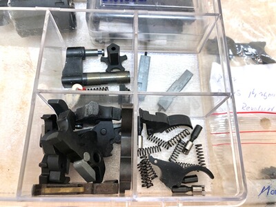 Es besteht überwiegend aus Revolver-Teilen ( Trommelachsen, Hämmer, Abzugsmechanik, ....) aber auch Selbstladepistolen-Teile.