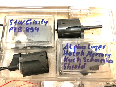 Erwähnenswert sind drei beiliegende Trommeln, unter anderem eine für die Modelle Mauser K50/L100, Reck Cobra, Colt Detective - eine weitere für den S&W Grizzly als auch eine hochwertige, Vollstahltrommel für Alfaproj-Revolver ( Holek, Mercury, Luger, Shield, Umarex Alfa, Schmeisser, Koch, Geco)