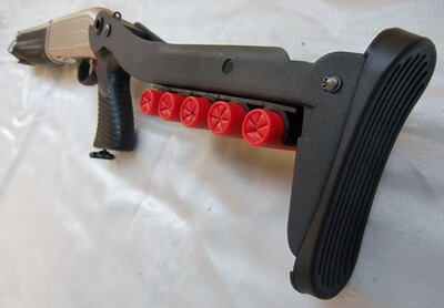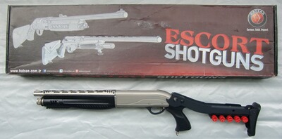 Halbautom. Flinte ESCORT „Auto Defend“ mit Überklappschaft und Patronenhalter, vernickelt, Kal. 12/76, NEUWAFFE IN OVP!!!