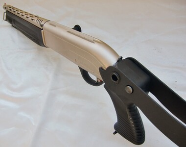 Nein, kein verbotener Gegenstand – nur Pumpguns die so aussehen sind „böse“. Da es sich hier um eine Selbstladeflinte (Langwaffe) handelt, ist diese jedoch erlaubt.