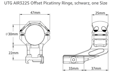 . Schienentyp: Picatinny • Profillevel: Hoch • Ringdurchmesser: 30 mm • Ringbreite: 25 mm • max. Scope Äußerer Objektivdurchmesser: 73 mm . Schrauben pro Ring: 4