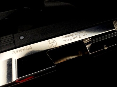 Ich verkaufe wegen Sammlungsverkleinerung meine premium Walther P99 SV NKL Schreckschusspistole 9 mm P.A.K. (PTB 762) Nickel-Finish [CNC-gefräster Stahlverschluss NKL]