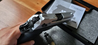 Sie ist nicht geschossen. Kleine Stelle oben am Schlitten ab. Lag stets im Schrank.