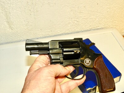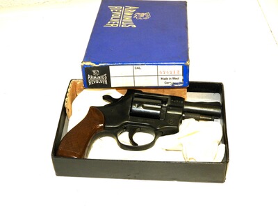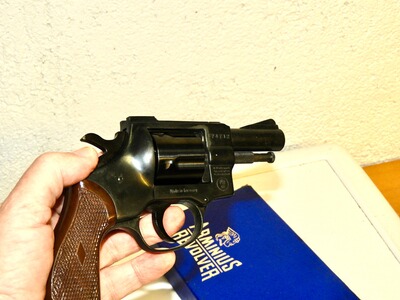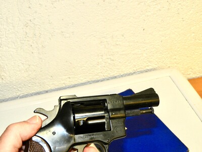 Der Revolver Weihrauch in Mellrichstadt, Model Arminius HW-2R aus den 1970er Jahren, wird hier angeboten. Dieses Modell ist für das Kaliber 9 mm RK (.380 Knall) ausgelegt und hat eine Trommelkapazität von 5 Schuss.