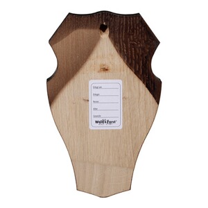Ohne Kiefereinlage. Größe 19x11cm. Stärke des Trophäenschildes 21 mm oben und 37 mm unten. Inklusive Aufkleber zum Eintragen der Daten des erlegten Stücks.