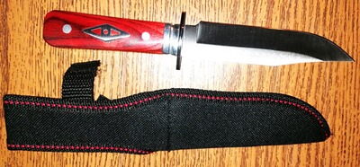 Klinge aus Edelstahl , Griff aus Holz und Edelstahl .