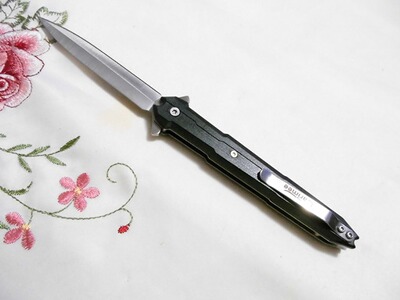Ein Slim Flipper Klapp-Taschenmesser ist ein Typ von Taschenmesser mit einem schlanken Profil und einem Flipper-Mechanismus. Der Flipper ist eine kleine, flache Stange, die aus dem Griff des Messers herausragt und verwendet wird, um das Messer schnell mit einer Hand zu öffnen.