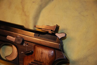 Kimme ist mit einem präz. gefertigten Adapter (fest verbaut) für original SIG .22er Systeme "höher gelegt". Somit muss der Hammer nicht verändert / abgefrässt werden! Das funktioniert!