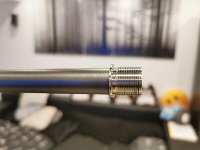 Mündungsadapter von M15 auf M18 verbaut und mit Loctite-Hochfest gesichert (für z.B. Schalldämpfer von Hausken)