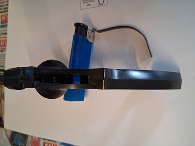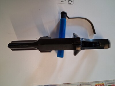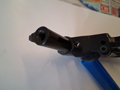 Griffstück und Abschussbecher sind in sehr gutem Zustand, die Griffschalen wurden schon mal repariert und überlackiert.