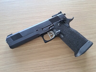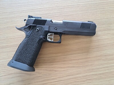 Verkaufe meine neuwertige 2011 Pistole im Kaliber 9mm Luger. Gebaut von Karl Hamann mit STI Schlitten und Rahmen, Kart Matchlauf mit Bushing und SVI Signature Alugriff. Ich beschränke mich zukünftig auf ein Waffenmodell, da ich mich an eine Handlage gewöhnen möchte.