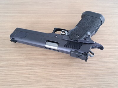 - Zubehör wie Verschlussfang mit Daumenauflage (PVD beschichtet), Magazine, Holster, Federn, Griptape vorhanden und können mit erworben werden.