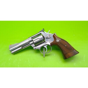 Revolver, Smith & Wesson USA, Modell 686, Kaliber .357Mag/.38 Spez., gebraucht, Stainless, 4 Zoll-Lauf, Rampenkorn mit roter Einlage, verstellbare Kimme, SA/DA - Abzug, geflutete Trommel mit 6 Schuß, Nußbaumgriffschalen mit feiner Punzierung und S&W Pin