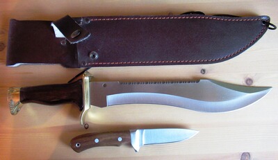 Versteigere ein Herbertz Ranger-Messer von beeindruckender Größe (Klinge 30 cm lang, gesamt Länge 43 cm) mit Lederscheide. Der Zustand sehr gut, fast neuwertig alles weitere entnehmen sie bitte den Bildern, die Teil der Beschreibung sind. Zum Vergleich ist auf einem Bild ein handelsübliches Jagdmesse mit 9,5 cm Klinge abgebildet, dieses Messer ist nicht Teil der Auktion.