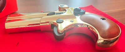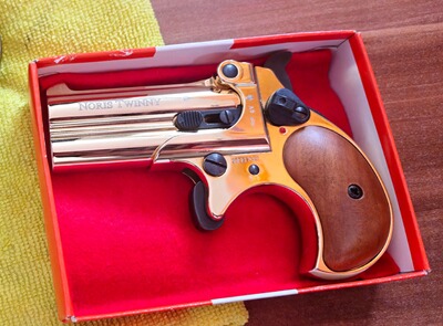 Ich Biete hier eine "Noris Twinny Derringer" Schreckschuss Goldedition im besten Zustand an, sie wurde sehr gepflegt, keine Kratzer, ungeschossen (Jungfrau), Verpackung original und im guten Zustand, Abschussbecher ist vorhanden...ich verkaufe sie für 550€ kein VB. Sie ist mittlerweile sehr selten und gerade in einen so guten Zustand sehr schwer zu bekommen. Ein Augenschmaus für echte Sammler! Versand läuft dann über DHL für 9,50€ extra und sie bekommen von mir die Sendeverfolge Nummer zugeschickt. Der insgesamt Preis wäre dann 559,50€ Bei weiteren fragen können Sie gerne eine Nachricht hinterlassen aber wie gesagt, KEIN VB! Der Verkauf ist Privat, kein umtausch und oder Garantie! Mfg Thormann