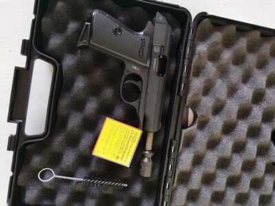 Walther PP 9mm P.A. in schwarz, im Koffer, mit Bürste und Abschussbecher.