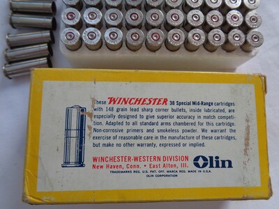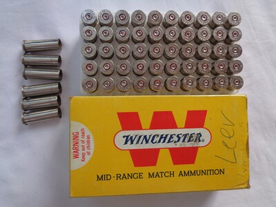 - 50 Stück Hülsen .38 Special Wadcutter Stainless Steel, Hersteller Winchester, in original Verpackung (70er Jahre) + 6 Stück Einzelhülsen