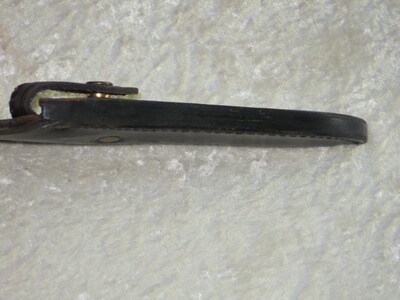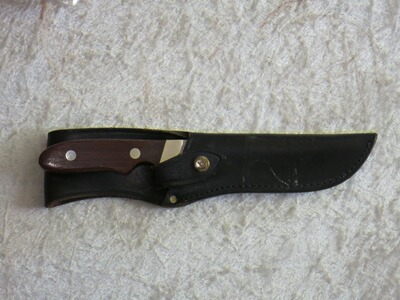 In der Scheide wird das Messer mit einem Druckknopf gesichert. Die Scheide formt am oberen Ende eine 10,5 cm lange Schlaufe, wodurch praktisch jeder Gürtel hindurchgeführt werden kann.