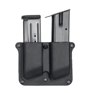 Hält zwei doppelreihige Magazine sicher und fest. Schraube zum individuellen Einstellen des Ziehwiderstandes. Geeignet für bis zu 3,8 cm breite Gürtel.