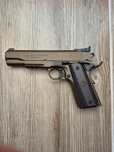 Biete eine sehr gut erhaltene und gepflegte 1911er Pistole Kaliber 45 Auto der Marke Schmeisser Hugo 5" Bronze mit Picatinny Schiene mit 2 x 8 Schuss Magazine