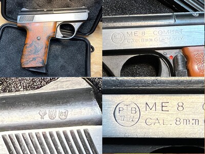 Hallo, ich biete meine ME 8 COMBAT in einem guten Zustand an. Der Vorbesitzer hat die Seiten des Schlittens aufpoliert, sieht aber echt gut aus. Die PTB 176/2 und Beschussjahr 1981 sagen schon alles. Lieferumfang: Pistole und die Box. Egal ob was für den Sammler, oder zum Gebrauch, die Gute mach auf jeden Fall immer eine gute Figur.