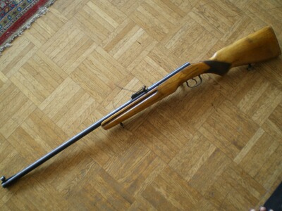 Verkaufe einen gut erhaltenen KK-Einzellader TOZ 8M im Kal.22lr.Leider ist an der Schaftspitze eine kleine Beschädigung. Die Waffe hat eine 11mm Prismenschiene für ZF.