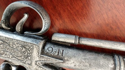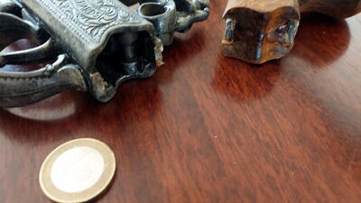 Zustand: Defekt! Der Griff ist abgebrochen (siehe Detailfoto); weitere Alters- und Gebrauchsspuren sind vorhanden. Ideal als Deko für Themenparty, Vitrine, Sammlervitrinen, Theaterrequisite oder Piratenfans. Alle Mechanikteile rein dekorativ.
