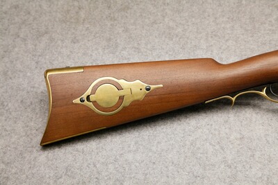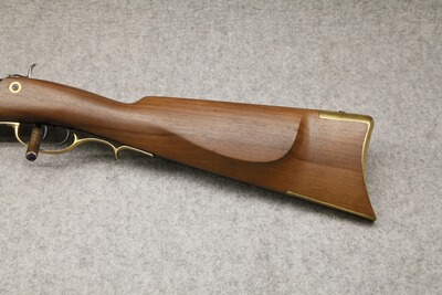 Kaliber .54, Perkussion. Neo-Klassiker des berühmten Vorbildes. Stecherabzug. Gezogener Achtkantlauf aus Stahl, Lauflänge 72,5 cm, Dralllänge 1200 mm, Länge 112,5 cm, Gewicht ca. 3,0 kg. Nußbaumschaft mit Messingbeschlägen.