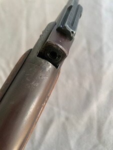 Gesamtzustand: komplett rostig angelaufen, aber nicht rauh oder schorfig. Eigentlich eine schöne Patina. Schaft hat diverse Kratzer und Macken. Das Ding ist ca 70 Jahre alt, da geht das meiner Meinung nach schon in Ordnung.