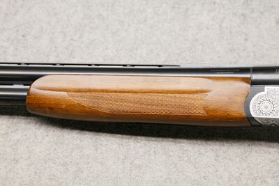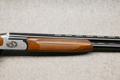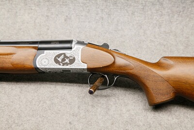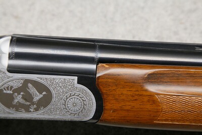 Kaliber 12/76. Lauflänge 71 cm, ventilierte 7 mm Laufschiene, Wechselchokes (Zylinder, ¼, ½, ¾, 1/1). Blitzsystem, Einabzug mit mechanischer Umschaltung, ohne Ejektor, Stahlbasküle mit Jagdgravur, Schiebesicherung und Laufwahlschalter auf dem Kolbenhals. Stabile Keilverriegelung. Stahlschrotbeschuss.