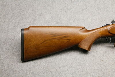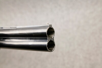 Es handelt sich um eine unbenutzte, sonst neuwertige Bockdoppelflinte. Fehler in der Brünierung am Lauf, Schaftmacken. Zustand siehe auch Bilder.
