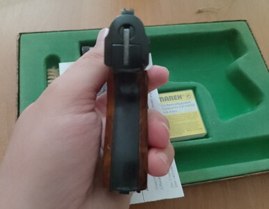 Eine äußerst kompakte, starke Pistole. Es handelt sich hierbei um eine von 1991 (Stempel KB) mit dem sehr alten PTB 83/2.