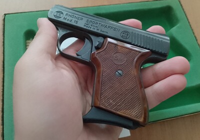 Alte Rhöner SM 15 Kal. 8 mm Knall im PTB 83/2 mit Verpackung!