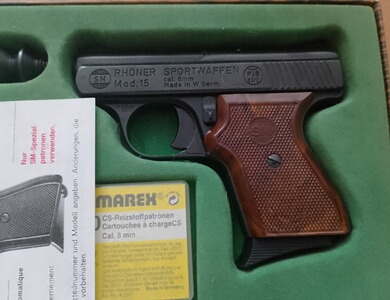 Verkaufe hier eine Rhöner SM Modell 15 Gas-Signalpistole 8 mm – eine kleine Rarität aus dem Hause Rhöner.