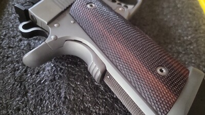 Die Waffe hat engste Passungen und ist hochwertigst verarbeitet. Topwaffe, sehr präzise! Eine besonderheit sind der hochwertige Magazintrichter, das hauseigene Briley Bushing, technisch eine richtig tolle Lösung und der hervorragende Abzug. Die Waffe verfügt über alle möglichen, hochwertigen Details, z.B. die vorderen Slide Serrations, die STI Micrometervisiserung, natürlich Checkering am Griffstück, Handballensicherung mit Memory-Grooves, Rosenholzgriffschalen, usw. Im vergleich zu vielen neuen, vergleichbaren Waffen zahlen Sie hier die Hälfte.