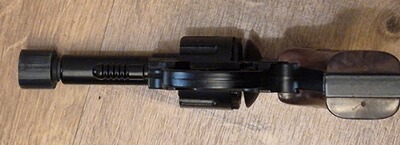 8-schüssig mit Kipplauf - das EINZIGE Schreckschussmodell mit PTB dieser Bauart. Da alte PTB recht tief sitzende Laufsperre.