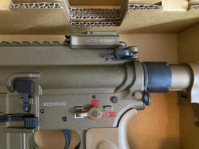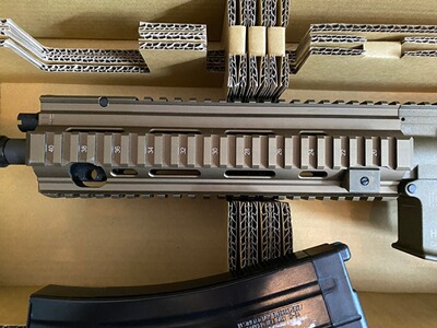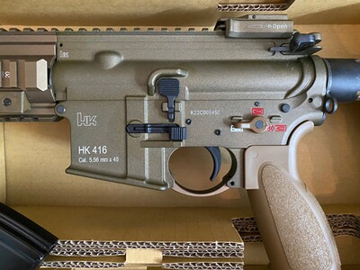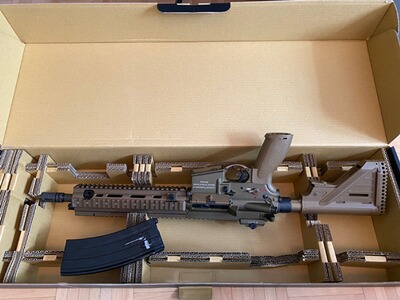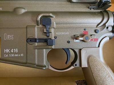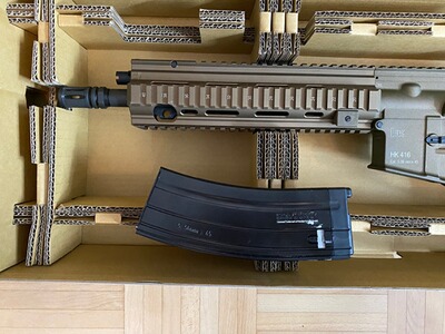 ich verkaufe mein VFG H&K HK416A5 Vollmetall GBB 6mm BB RAL 8000 in grünbraun.