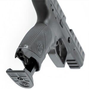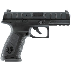 Die APX Co2-Pistole ist eine Replika aus dem Hause Beretta. Sie kommt mit Original Markings. Das Modell verfügt über einen großzügig geriffelten Metallschlitten und einen ergonomisch geformten Kunststoffgriff. Zudem ist eine Picatinnyschiene zum Anbringen von taktischem Zubehör unter dem Lauf integriert. Weitere Merkmale sind die Blow Back Funktion (beweglicher Schlitten), die manuelle Sicherung, eine feste Visierung und ein Double Action Abzug. Betrieben wird die Beretta APX mit einer Standard 12-Gramm Co2-Kapsel, die für ca. 150 Schuss ausreicht. Das Magazin hat eine Kapazität von 19 Schuss Stahl BB im Kaliber 4,5 mm.