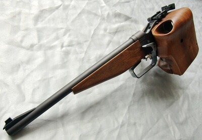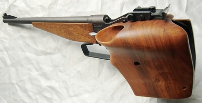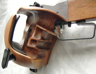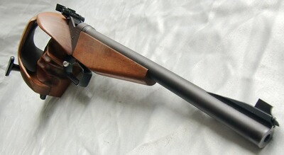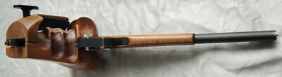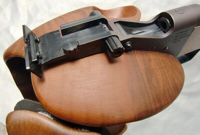 Kippblockverschluß (Martini-Verschluß), höhen- und seitenverstellbare Micrometervisierung, fein einstellbarer Stechabzug, Abzugsgewicht 5 - 100 Gramm, Holz-Matchgriff mit Fingerrillen für Rechtshänder (für kleine bis mittelgroße Hände), Vorderschaft ebenfalls aus Holz, Finish: brüniert.