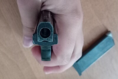 Die Waffe wurde laut Vorbesitzer auch genutzt, bei mir lag sie die letzten Jahre nur im Schrank rum. Sie befindet sich noch in einem akzeptablen Zustand. Die Brünierung ist im Schlittenbereich schon bisschen ab. Ich habe sie nur einmal zum Test geschossen und sie hat funktioniert. Sie wird mit der Anleitung und Verpackung verkauft.