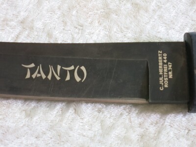 Angeboten wird ein vintage Survival Messer mit schwarzer TANTO Klinge.