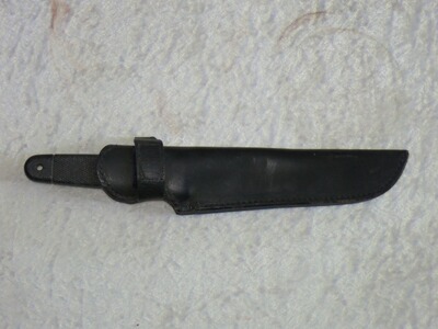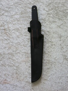 Das Messer kommt mit der dicken, original Lederscheide mit Klettsicherung und Gürtelschlaufe.