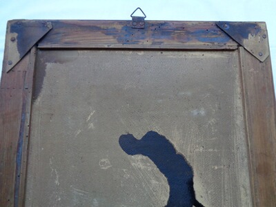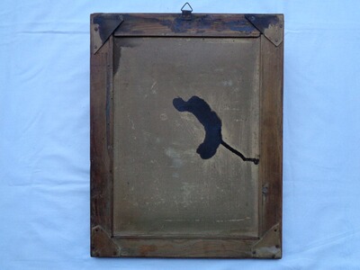 - Auf der Rückseite befinden sich im Rahmen altersbedingt wenige Spuren von Holzwurmfraß