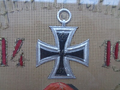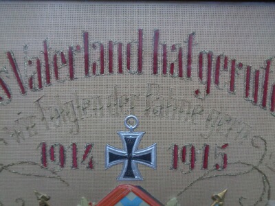 Dazu die Jahreszahlen 1914 & 1915 welche ein stilisiertes Eisernes Kreuz aus Metall umrahmen.