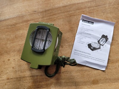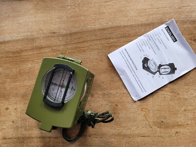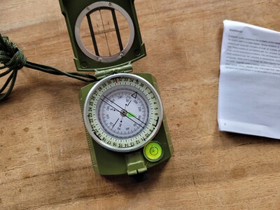 Mit Flüssigkeitsdämpfung, Anlagekante mit Maßstab, Neigungsmesser, Peileinrichtung und Vergrößerungsglas im Sucher.