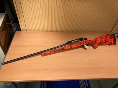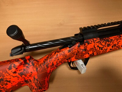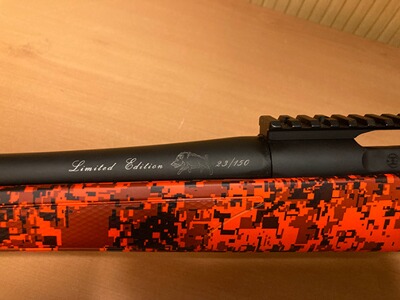 Bergara B-14 Kal. 300 Win Mag Limited Edition plus Recknagel Eratac Gewindeadapter ERALOC Schnellverschluss passend für alle ERA Silencer Bergara B14 Driven Hunt Limited Edition .300 Win Mag Camouflage Blaze Orange Limitierte Nummer: 23/150 Die Bergara B14 Driven Hunt ist weltweit auf 150 Stück limitiert. Mit individueller Kennzeichnung soll dieses Gewehr eine in vielen Ländern sehr verbreitete Jagdart abdecken, wie zum Beispiel die Drückjagd. Dank der orangefarbenen Tarnung, dem Kaliber 300 Win Mag und einem schnell montierbaren Schaft im Montecarlo-Stil sowie der offenen Visierung ist diese Edition perfekt auf die Bedürfnisse von Jägern dieser Jagdart abgestimmt. Technische Daten: Typ: Repetierbüchse Lauflänge: 24" (61cm) Kaliber: .300 Win. Mag. Monte Carlo Carbon Schaft Farbgebung Schaft: auffälliges, gut sichtbares orangenes Camouflage Muster Lauf: Graphite Black Cerakote Finish Verschluss: kannelierter, ebenfalls cerakote beschichtet OMNI Mündungsbremse, cerakote beschichtet offene Visierung (abnehmbar) Picatinny-Stahlschiene 0 MOA Abzug: Bergara Performance Trigger Gewinde: M14x1 Mündungsdurchmesser: 16,6mm Drall: 1:10 Magazinkap.: 2+1 Patrone + Zusatzmagazin Mündungsbremse Gesamtlänge: 115 cm Gewicht inkl. Schiene: ca. 3,3 kg