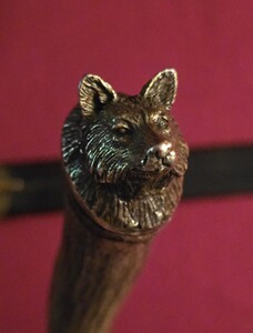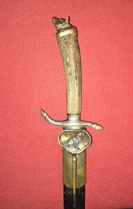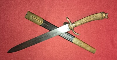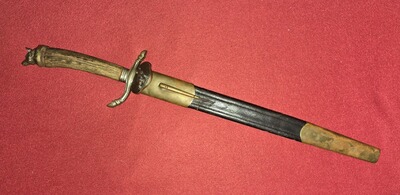 Griff - echt Hirschhorn, Griffteile und Scheidenbeschlägen - Messing und Bronze.